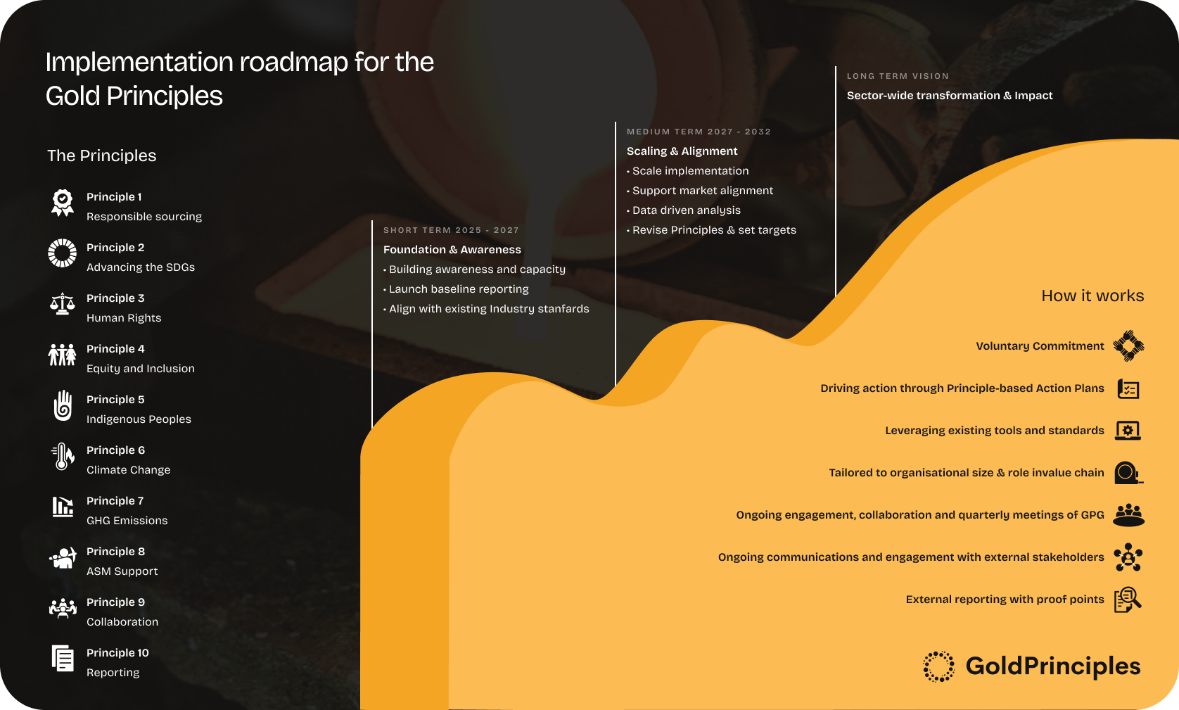 As the Gold Principles Group develops, we will share more progress on this website, including summaries of the Action Plans as they are approved.